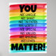 VOUS AVEZ DE L'IMPORTANCE ! Un grand poster à accrocher dans un bureau d'orientation scolaire, un pédothérapeute ou un psychologue pour rappeler aux enfants qu'ils ont de l'importance ! Une affiche très mignonne pour décorer la salle de classe ou le bureau avec ! Les couleurs de l'arc-en-ciel sont vives, amusantes et joyeuses. L'article est doté d'un arrière - plan aquarelle.