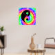 Cette affiche rétro cool couche un symbole yin-yang sur un arrière - plan en spirale arc-en-ciel coloré et aéré qui vous rappellera votre teinture à cravate préférée. Fait un grand poster de dortoir et fonctionne aussi comme un imprimé encadré pour l'éclectique raffiné.