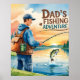 Faites la fête de papa avec cette affiche de l’aventure de pêche papa! Ce téléchargement numérique est idéal pour la fête des pères du 15 juin 2025. Il s'agit d'une scène d'aquarelle sereine d'un père pêchant au bord d'un lac avec le texte "Papa's Fishing Adventure". Téléchargez maintenant, imprimez à la maison, et offrez à papa un beau design pour son passe-temps préféré !