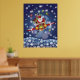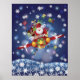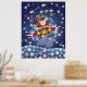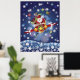 Noël Père Noël avec un renne volant un festin Décor Antique Vintage classique hélice avion livrant des boîtes de cadeaux enveloppés Présents sur un Arrière - plan de la nuit de neige bleue