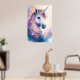 Poster d'une licorne majestueuse avec une corne chatoyante et colorée est représenté au milieu d'un arrière - plan rêveur de couleurs pastel douces. Sa crinière flottante est ornée de fleurs délicates, créant une scène éthérée et enchanteresse.