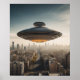 Énorme soucoupe volante UFO au-dessus d'une ville