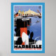 Affiche de style art déco vintage faisant la promotion du port de Marseille comme point d'embarquement pour l'Afrique du Nord.
