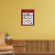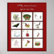 Chaque carré de cette affiche motif en grille rouge contient une aquarelle colorée représentant chacun des douze jours de Noël avec le numéro de chaque jour dans le coin supérieur gauche. L'expression "Mon véritable amour m'a été donné" en blanc en haut complète le design. À partir de mon numériquement d'origine créé image.