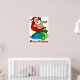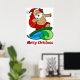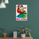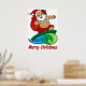 Le Père Noël exceptionnel surfe sur une vague sur une planche de surf tout en portant des troncs de natation et son casquette. Autour de son cou est une fleur lei et il a une fleur rouge au-dessus de son oreille qui est juste parfait pour une affiche d'île tropicale et texte Joyeux Noël.