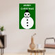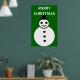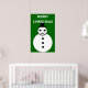 Cette affiche festive amusante présente un bonhomme de neige blanc et souriant avec des boutons noirs et un chapeau haut de gamme. Il a l'air d'un agent cool et aimerait vous aider à répandre la joie de Noël cette année. L'arrière - plan est une teinte festive de vert et il y a une bordure blanche et un texte blanc enneigé qui dit "Joyeux Noël". Le poster est disponible en plusieurs tailles, ce qui en fait un décor idéal pour un salon familial ou un grand hall.