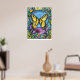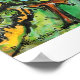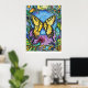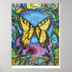 Un grand tigre jaune essuie le papillon sonne dans cette aquarelle mixte. Entouré de symboles de terre et de fleurs, le papillon tigre est le dernier de cette série Enfants de la Terre. Affiche.