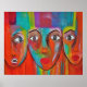 Cette affiche personnalisée présente une peinture à l'huile contemporaine représentant trois visages de femmes africaines vibramment peintes dans des textures de brosse colorées.