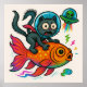 Poster de poisson de l'équitation de chat Space