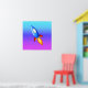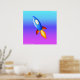 Une formidable fusée rétro contre un arrière - plan multicolore.