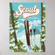 Poster de voyage ski Séoul Corée du Sud dans un beau style rétro.