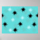Cette affiche de Starbursts Turquoise Atomique a tout le plaisir moderne du milieu du siècle de la cuisine de votre grand-mère, moins le linoléum collant. Le design kitschy est composé d'un arrière - plan vert avec des taches d'or et des starbursts placés aléatoirement en noir, et des tons d'aqua et de turquoise. Cette motif d'inspiration vintage est assez moderne pour être design et rétro pour être classique. Vous apprécierez ce design minimaliste.