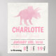 Cette adorable affiche de statistiques de naissance de dinosaures est parfaite pour la crèche ou la chambre de votre petite fille sur le thème du dinosaure. Customisez le design avec son nom, la date de naissance et les mesures pour créer une pièce d'art personnalisée ! C'est un cadeau merveilleux pour un nouveau bébé !