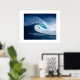 L'affiche est montrée avec une photo d'un surfeur survolant la vague. Customisez cet objet ou achetez tel quel. Image stock