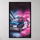 S'enfuir de la loi n'a jamais eu l'air si bon ! Achetez cette affiche de voiture de police infusée de néon aujourd'hui! Couvrez vos murs avec style dans la voiture de l'équipe Synthwave rétro future!