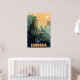 Cette affiche de voyage extraordinaire présente une statue cambodgienne avec un visage en pierre au coucher du soleil au milieu de la jungle. #travel #adventure #cambodia #modern #retro #stonestatn #sunset #jungle #fun #stone #face #old #antique