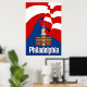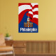 Affiche de voyage patriotique pour Philadelphie, avec la salle de l'indépendance.