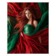 Design Extraordinaire avec un modèle aux cheveux roux en tissu vert et rouge. Le contraste des cheveux roux et des tissus verts et rouges vifs crée un visuel captivant, parfait pour exprimer une individualité audacieuse. Le vert évoque la croissance et l'harmonie, tandis que le rouge symbolise la passion et l'énergie, une combinaison qui incarne la confiance et le flair.