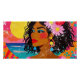 Un magnifique portrait pop art d'inspiration rétro avec une femme aux cheveux foncés fluides ornée de fleurs tropicales. Ajoute une explosion de couleur et d'énergie positive. Un effet de papier feuilleté complète le look rétro.