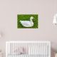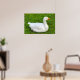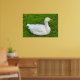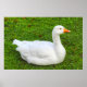 Photo d'une Oie d'Emden blanche assise sur l'herbe.
