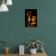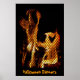Les flammes derrière un écran de cheminée se transforment en deux danseuses d'Halloween joyeuses sur cette affiche amusante !