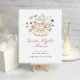 Laissez votre journée spéciale s'épanouir avec cette affiche d'idées de date de thé nuptiale! Ce design présente de superbes fleurs d'aquarelle peintes à la main dans des teintes de violet profond, de bleu poussiéreux et de rose roux avec de la végétation sauge. Que vous soyez l'hôte d'une fête dans le jardin ou d'un rassemblement intime et confortable, ce magnifique design apportera un charme particulier à votre événement.