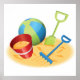 Jouets de plage pour s'amuser à la plage. L'essentiel est dans ce design de plage. Il dispose d'une pelle, d'un râteau, d'un seau, d'un ballon de plage et de sable. Ce design de jouets de plage est superbe sur cette affiche. Parfait pour vous-même ou comme cadeau