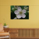 Cette belle impression présente une photo d'une fleur de mûre blanche. La photo a été prise en utilisant la macro photographie pour un résultat détaillé. On y voit les détails fins comme la teinte rose sur les pétales blancs.