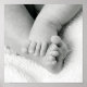 Une belle photo de gros plan des mignons petits pieds d’un nouveau bébé en noir et blanc