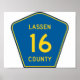 Cette conception est un panneau routier de comté lassen. Le panneau indique le comté de Lassen avec un numéro 16 dessus. Ce panneau routier de comté lassen a l'air superbe sur cette affiche