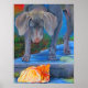 Tableau original intitulé : "Traverser les sentiers" de Laura Barbosa a été vendu dans l'heure de l'ouverture de la Galerie à la grange d'art Tinicum à Erwinna PA. Cette oeuvre d'art est maintenant disponible sur nos produits zazzle. Une peinture acrylique d'un chien Weimaraner et d'un chat Tabby Orange Traversant Paths sur une affiche.