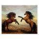 Deux chevaux sauvages s'élevant avec là crinière soie noire soufflant dans le vent. www.giftideas505.com