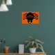 Cette impression d'Halloween présente une araignée noire éffrayante avec huit pattes poilues, des yeux jaunes avec de grands élèves noirs et sa bouche ouverte montrant ses crocs. L'arrière - plan est orange et la bordure noire. Il y a du texte orange sur le dos de l'araignée qui dit "Happy Halloween".