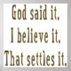 Lisez les lettres marron, "Dieu l'a dit. Je le crois. Cela règle la question." Excellente façon de partager votre foi en Dieu et votre croyance en votre religion. Cadeau merveilleux pour Noël, Pâques, les anniversaires ou tout autre moment spécial. Également excellent pour les occasions religieuses telles que les ordinations, les mariages, les baptêmes, les premières communions, les confirmations et tout jour saint.