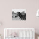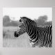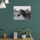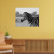 Poster est montré avec une photo en noir et blanc d'une belle zèbre. Customisez cet objet ou achetez tel quel. Image stock