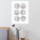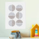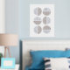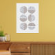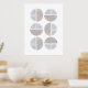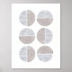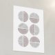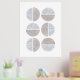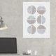 Cet imprimé d'art moderne comporte une série de cercles divisés en deux, et divisés en lignes courbes et droites. La moitié solide de chaque cercle est d'une couleur gris vif, tandis que l'autre moitié est pressée en feuille d'or ou d'argent. Ce design est assez polyvalent pour fonctionner avec une variété de styles de décoration, mais je pense qu'il aurait l'air génial dans un bureau ou un loft.