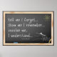 Poster Dis-moi que j'oublie la citation. Proverbe chinois