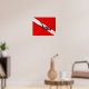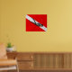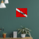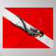 Le drapeau S.C.U.B.A., ou Diver Down Flag, est un drapeau rouge et blanc flottant sur un bateau pour indiquer qu'il y a des plongeurs dans l'eau et que d'autres plaisanciers restent clairs. Il y a un plongeur en équipement complet de plongée sous-marine.