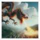 Un dragon à la chinoise plongeant du ciel en faisant feu sur un petit village. Par martinspixs.