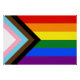 Drapeau de fierté Progress Pride de SlipperyJoe six bandes arc-en-ciel horizontales classiques chevron pointant vers l'avant blanc rose bleu clair transgenre marron noir pour les communautés marginalisées celles perdues touchées par le VIH SIDA cadeaux artistiques LGBTQIA fierté gay fiers inclusifs et intentionnellement modernes style propre et audacieux haute contraste forme crée un sentiment de mouvement dynamique rouge orange jaune vert bleu violet