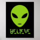 Poster Drôle CROIRE vert alien tête d'affiche d'art