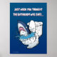 Juste quand vous pensiez que la salle de bain était sûre.... Voici l'affiche parfaite pour nourrir vos peurs déjà paranoïaques sur SHARKS! Illustration de dessin d'un grand requin blanc sortant des toilettes !