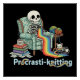 Poster Drôle Procrasti tricot Squelette et chat avec