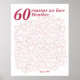 Une merveilleuse idée de 60ème anniversaire. Cette affiche de 16x20 pouces contient 60 coeurs pour vous permettre de remplir 60 courts messages d'amour. Parfait pour les souhaits d'anniversaire de la famille - ou utiliser à une fête comme livre d'or. Les coeurs sont dimensionnés d'environ 0,5 pouce à 1,5 pouce chacun.