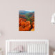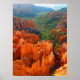 Bryce canyon affiches Utah DE 8.99. Le canyon de Bryce n'est pas un canyon mais un amphithéâtre naturel géant créé par l'érosion le long du côté est du plateau de Paunsaugunt. Les mots confondus lorsqu'il n'y a pas de comparable. Une grotte sans plafond ? Une forêt de pierre ? Même le "canyon" est trompeur puisque Bryce est sculpté par des cycles de gel-dégel, pas une rivière. Pourtant, le "plus grand nid de poule du monde" n'est ni adéquat ni flatteur. Bryce se distingue par des structures géologiques appelées hoodoos, formées par l'érosion du vent, de l'eau et de la glace de la rivière et des roches sédimentaires des lacs. Les couleurs rouge, orange et blanc des rochers offrent une vue spectaculaire aux visiteurs du parc. Bryce est situé à une altitude beaucoup plus élevée que le parc national Zion voisin. Spectaculaire à tout moment de l'année, cette merveille du monde ajoutera majesté et profondeur à toute pièce