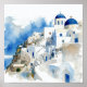 Poster du Carré de peinture à l'aquarelle Santorini Grèce.
