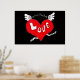 Cette affiche amusante a l'air vintage d'un coeur de tatouage ailé, sur un arrière - plan noir.