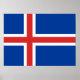 Le drapeau de l'Islande (islandais : íslenski fáninn) a été officiellement décrit dans la loi no 34, publiée le 17 juin 1944, jour où l'Islande est devenue une république. La loi s'intitule "La loi du drapeau national des Islandais et les armoiries de l'État" et décrit le drapeau islandais comme suit : Le drapeau national civil des Islandais est bleu comme le ciel avec une croix blanche-neige, et une croix rouge-feu à l'intérieur de la croix blanche. Les bras de la croix s'étendent jusqu'au bord du drapeau, et leur largeur combinée est 2/9, mais la croix rouge 1/9 de la largeur combinée du drapeau. Les zones bleues sont des rectangles à angle droit, les surfaces rectilignes sont parallèles et les surfaces rectilignes extérieures aussi larges qu'elles, mais deux fois plus longues. Les dimensions entre la largeur et la longueur sont de 18:25. Le premier drapeau national de l'Islande était une croix blanche sur un arrière - plan bleu profond. Il a été présenté pour la première fois lors d'une parade en 1897. Le drapeau moderne date de 1915, quand une croix rouge a été insérée dans la croix blanche du drapeau d'origine. Cette croix représente le christianisme. Il a été adopté et est devenu le drapeau national lorsque l'Islande a obtenu son indépendance du Danemark en 1918. Pour le peuple islandais, la coloration du drapeau représente une vision du paysage de leur pays. Les couleurs représentent 3 des éléments qui composent l'île. Le rouge est le feu produit par les volcans de l'île, le blanc rappelle la glace et la neige qui couvrent l'Islande, et le bleu pour l'océan Atlantique. Le drapeau de l'Etat (Tjúgufáni) diffère de celui de la ville civile, que les rectangles extérieurs sont trois fois plus longs que les rectangles latéraux du treuil et fractionnés à l'extrémité, coupés directement des coins extérieurs à sa ligne centrale. Couper les bords intérieurs des rectangles extérieurs à 4/7 de la longueur extérieure et à 3/7 de la longueur intérieure des rectangles extérieurs. Lorsque cette coupe rencontre le bord de la croix rouge, elle est coupée verticalement.