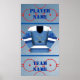 Poster avec un maillot de hockey au-dessus d'une réplique de patinoire avec bâtons de hockey croisés et rondelle disponible dans une grande variété de combinaisons de couleurs d'équipe. Customisez avec le nom, le numéro et le nom de votre joueur. Fait un grand cadeau pour les joueurs de hockey, les entraîneurs de hockey et les fans de hockey ainsi que les joueurs de la ligue d'imaginaire de hockey.