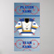 Poster avec un maillot de hockey au-dessus d'une réplique de patinoire avec bâtons de hockey croisés et rondelle disponible dans une grande variété de combinaisons de couleurs d'équipe. Customisez avec le nom, le numéro et le nom de votre joueur. Fait un grand cadeau pour les joueurs de hockey, les entraîneurs de hockey et les fans de hockey ainsi que les joueurs de la ligue d'imaginaire de hockey.